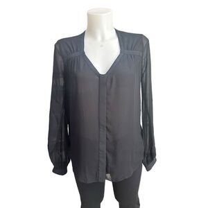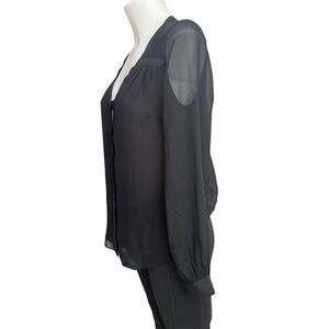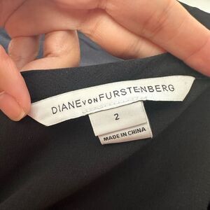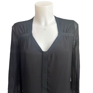 Diane Von Furstenberg Black Silk Button Down V Neck Top size 2 Lightweight Soft