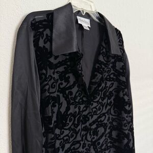 Diane Von Furstenberg Black Silk Velvet Button Up Blouse Plus Size 1X Editorial