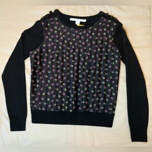 Diane Von Furstenberg Black Sweater with Pink Floral Design