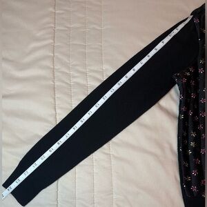 Chic black sweater with vibrant pink floral accents. Ideal for stylish layering.