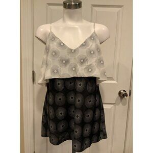 Diane Von Furstenberg Black & White 100% Silk Sunburst Pattern Tank Top, Size L