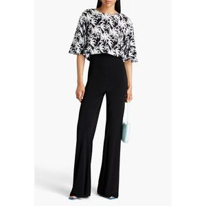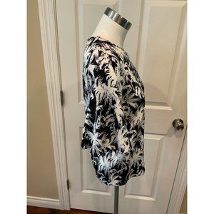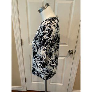 Diane Von Furstenberg Black & White Silk Palm Print Crepe Top, Size XXS NWT!