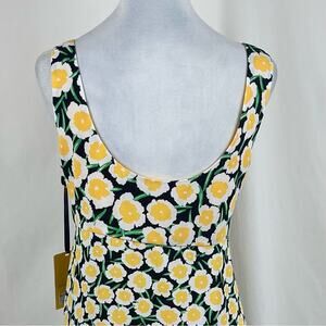 Diane Von Furstenberg Black Yellow Bold Floral Babydoll Cottage Dress NWT