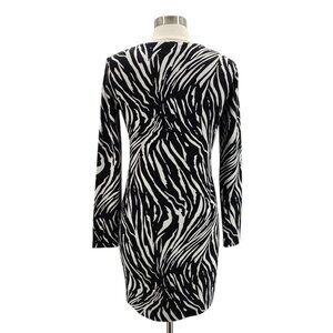 Stylish zebra print dress. Long sleeves. V-neckline. Perfect for any occasion.