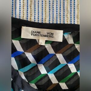 Diane Von Furstenberg Black Geometric Print Long Sleeve Wrap Maxi Dress Size L