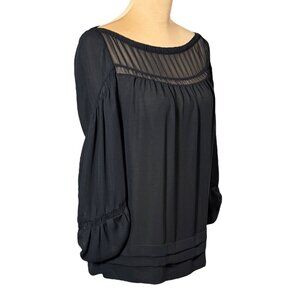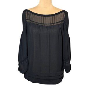 Diane Von Furstenberg Blouse Sz.S Black Chiffon Balloon Sleeve Minimalist Classy