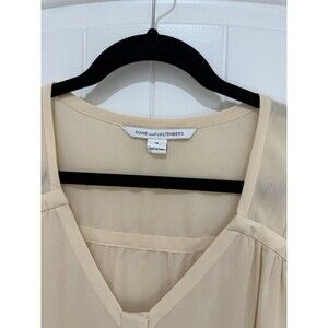 Diane Von Furstenberg Blouse Top Beige Nude Long Sleeve 100% Silk Sz 14