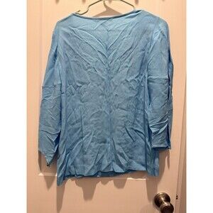 Diane Von Furstenberg Blouse Womens Size 6 Aqua Blue Puff Sleeve Box C
