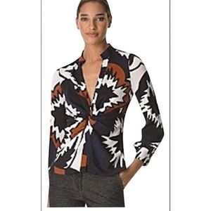 Diane Von Furstenberg Blouse Women’s size 0 XS Nadina Picasso Print Silk Shirt