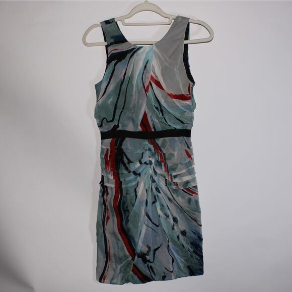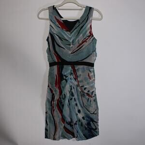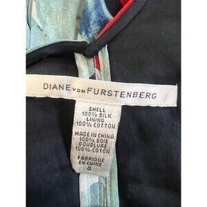 Diane Von Furstenberg Blue Abstract Multicolored Silk Midi Dress Size 4