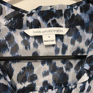 Diane Von Furstenberg Blue Cheetah Printed 100% Silk Lorelei Blouse Size 8. Pit to pit is 20.5.