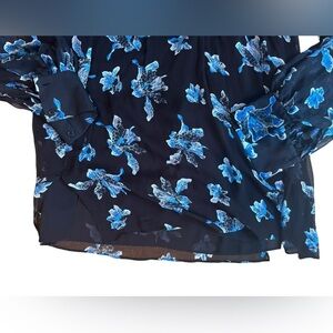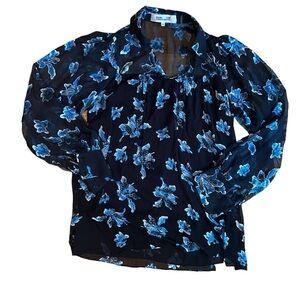 Diane Von Furstenberg Blue Floral Orchid Silk Burnout Long Sleeve Blouse V Neck Size XS