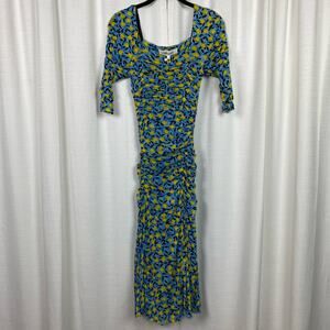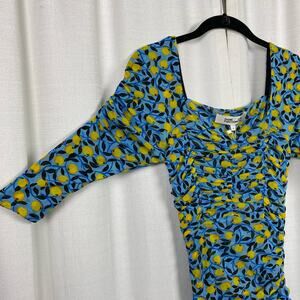 Diane Von Furstenberg Blue Lemon Print Dacey Dress Sz.M NWT