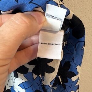 DVF 100% silk floral print dress. Drawstring waist. Buttons on top. A few spots with discoloration. See images. Hard to see when wearing but full disclosure. I have not tried to remove the stains.