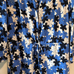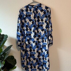 Diane Von Furstenberg Blue and White Floral Long Sleeve Dress