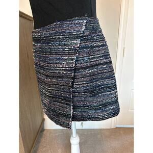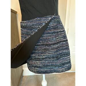 Diane Von Furstenberg | Blue/Black/Pink Boulc/Tweed A Line Faux Wrap Skirt | 12