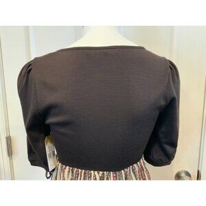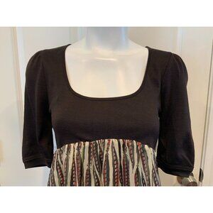 * Brown 100% wool top with 100% silk multi-color hem
