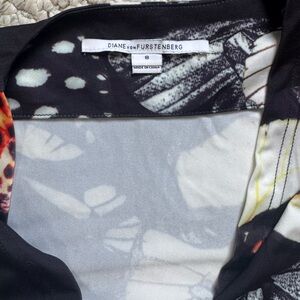 This Diane Von Furstenberg wrap dress features a sophisticated 3/4 sleeve design, perfect for any occasion. Crafted with attention to detail, it offers a timeless silhouette that exudes elegance and style. The classic black color adds a touch of versatility, making it a staple piece in any wardrobe. Great condition.