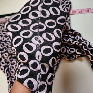 Wrap yourself in the luxury of cashmere and silk with this stunning Diane Von Furstenberg DVF cardigan. The geometric pattern and tight-knit fabric make it perfect for any occasion, whether it be travel, workwear, or even a casual day out. This black cardigan with purple Os is a vintage pattern piece that will never go out of style. Suitable for all seasons and perfect for anyone who loves designer clothing. Dry clean only to maintain its beauty.