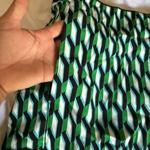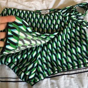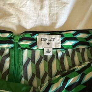 Chic wrap skirt-pants by Diane Von Furstenberg. Features a bold chevron pattern in green, black, and white. Ideal for stylish outings,in very good used condition,accept offers,free gift with each purchase,same day shipping.