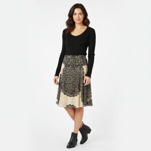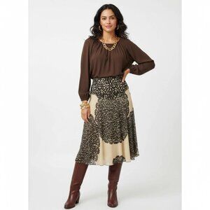 Diane Von Furstenberg Chocolate Brown Tan Floral Print Velvet A Line Skirt 4