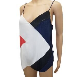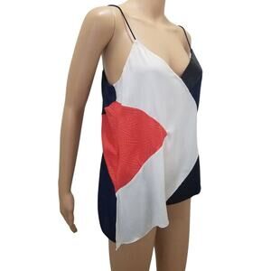 Diane Von Furstenberg Cream Black Pink Silk Spaghetti Strap Tank Top Size Medium