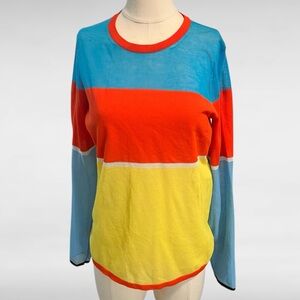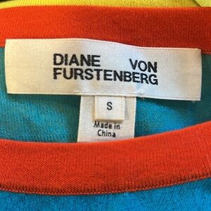 Diane Von Furstenberg tri-colored mesh long sleeve top with crew neck. In excellent condition. Size Small.