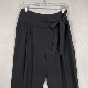 Diane Von Furstenberg Cropped Pants Size 6 Black Crepe Pleated Side Tie Pocket