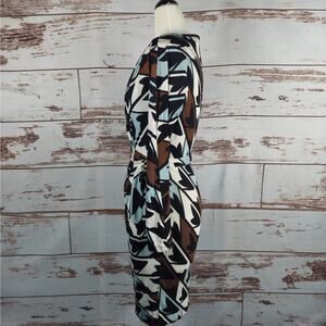 Diane Von Furstenberg Julian Silk Jersey Wrap Dress. Cream/brown/black/light blue print. Excellent Preowned Condition, no flaws. Size 4