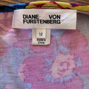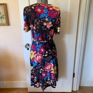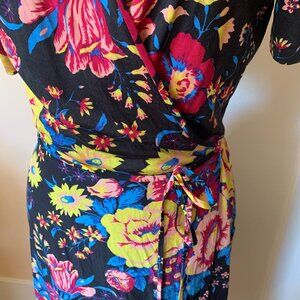 Diane Von Furstenberg DVF Bournier Floral Print Silk Wrap Floral Dress Sz 12 BLK