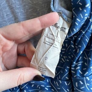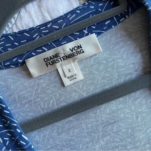 Step into chic style with this stunning Diane Von Furstenberg (DVF) Celeste Banded Wrap Romper. A perfect blend of sophistication and playfulness, this romper features the iconic DVF wrap design in a captivating blue and white pattern. With its figure-flattering silhouette and banded waist, it embodies contemporary fashion while honoring the timeless appeal of the DVF brand.