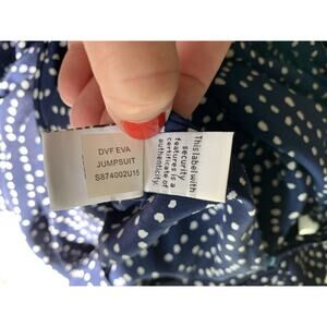 Diane Von Furstenberg DVF Eva Jumpsuit Small Blue Polka Dot Silk Sleeveless