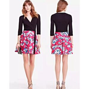 Diane Von Furstenberg DVF Jewel Silk Wool Wrap Dress Sz 2 floating flowers pink