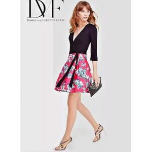 Diane Von Furstenberg DVF Jewel Silk Wool Wrap Dress Sz 2 floating flowers pink Size: 2