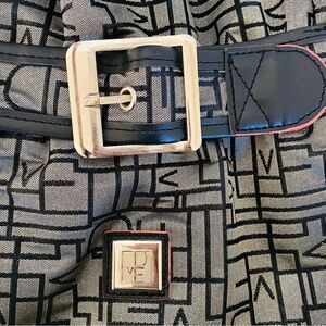 Signature DVF logo on silver fabric with black faux leather trim