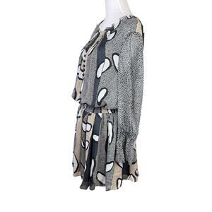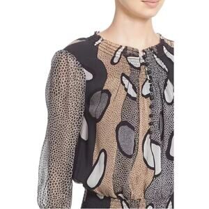 Diane Von Furstenberg DVF NWT Kelley Brown Black Printed 100% Silk Blouson Dress