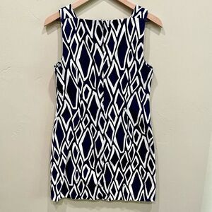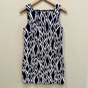 DVF Diane von Furstenberg Navy Blue White Printed Mini Shift Dress