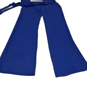 Diane Von Furstenberg DVF Purdy Crepe Jumpsuit Size 8. Cobalt Blue. Overall great condition see photos for details. Two small marks near waist that would like be covered with belt. Stunning piece for a DVF collector. Approximate measurements 64” length 16.5 width at bust and 15” width at waist. Side clasp and zipper.