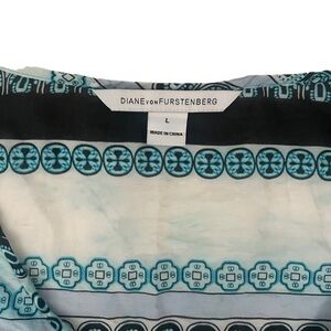 Diane Von Furstenberg DVF Silk Blend Blouse Sleeveless Ruffle Large Blue Boho