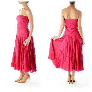 Vintage Diane von Furstenberg magenta pink shirred top full skirt strapless midi dress, size 6