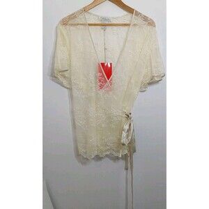 Diane Von Furstenberg DVF Women's Size 1X Lace Wrap Top Silk FLAWED Ivory Color