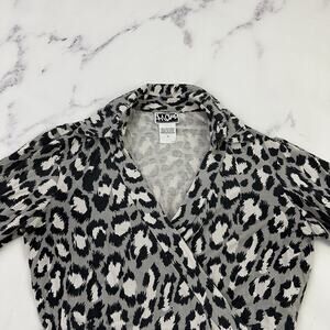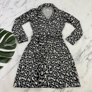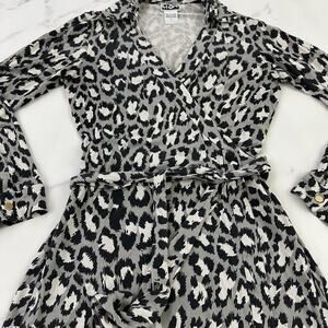 Diane Von Furstenberg DVF Womens Wrap Dress Size 2 Black Gray Leopard Print Silk