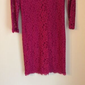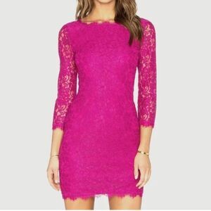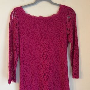 Diane Von Furstenberg DVF Zarita Lace Dress 3/4 sleeve Pink Fuchsia size 8 EUC!