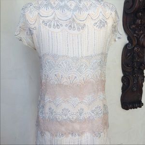 Diane Von Furstenberg DVF size 10 silk lined sheer scoop neck top