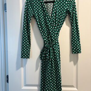 Gorgeous green geo print DVF wrap dress. Excellent condition.