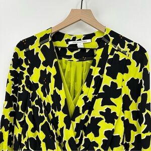 Diane Von Furstenberg Dora Lily Crepe Dress Dove in Bloom Acid Lime Print Size 4