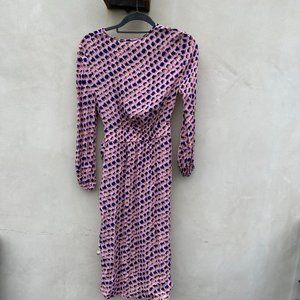 Diane Von Furstenberg Draco Wrap V-neck Dress Deep Blue Geometric Print Sz 2