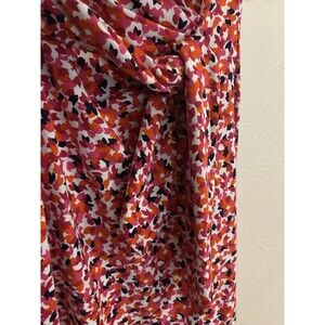 Elevate your wardrobe with this stunning Diane Von Furstenberg dress. The geometric floral pattern and red color make it perfect for any formal or business occasion. The dress features short cap sleeves, a round neckline, and a pullover closure. It is made of a lightweight silk blend material with pleated accents and a waist tie, making it comfortable and stylish.
