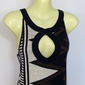 BY DIANE VON FURSTENBERG, HERE IS HER FABULOUS “HINA” DRESS DONE IN COTTON AND CASHMERE. IT IS AN ABSTRACT NAVAJO PRINT DONE IN BLACK, WHITE AND A GOLDEN BROWN. PULLOVER STYLE, IT FEATURES A KEYHOLE NECK AND IS A SHEATH BODY CON STYLE. SUPER SOFT WITH STRETCH.NEW WITH TAGS! SIZE SMALL, PLEASE NOTE THE MEASUREMENTS
