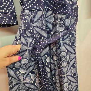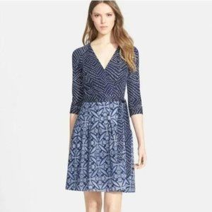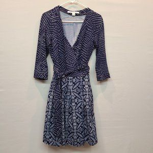 Diane Von Furstenberg Dress Jewel Print Navy Blue Wrap Mini Floral Dot DVF Sz 6